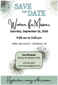 Information for 2026 is upcoming. Women for Missions 2026 will be announced soon.